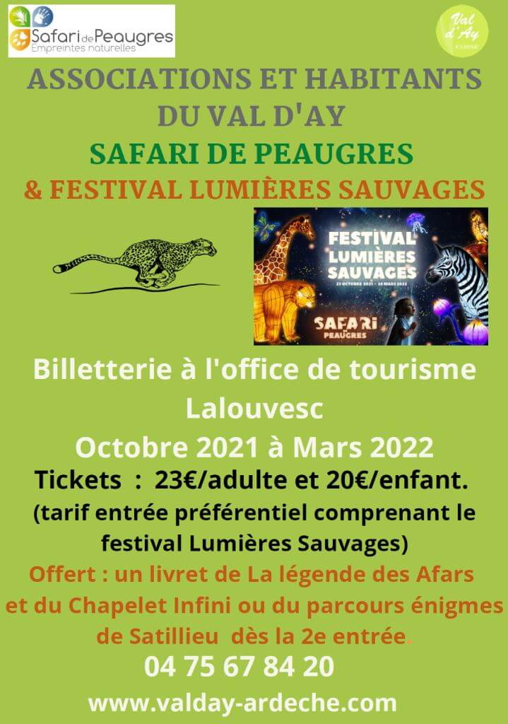 L' office de tourisme propose des offres pour les vacanciers de la Toussaint concernant la location de vélos à assistance électrique mais aussi la vente de tickets pour le Safari de Peaugres, qui à partir du 22 octobre propose avec l’entrée au parc animalier le festival Lumières Sauvages.