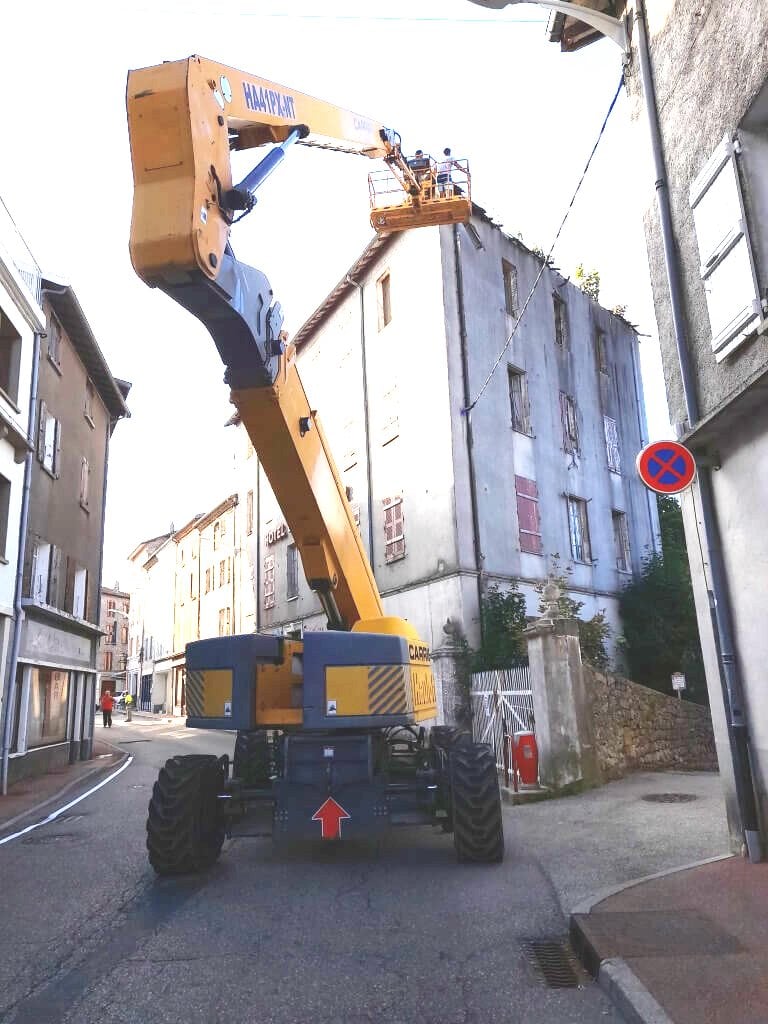 Il est plus que temps qu’il démarre, comme le montre cette intervention d’urgence d’un cheneau, déboité par le vent, qui menaçait les passants. Elle a eu lieu cette semaine grâce à la nacelle de l’équipe d’ouvriers qui intervient actuellement sur l’hôtel Monarque. Merci à eux !