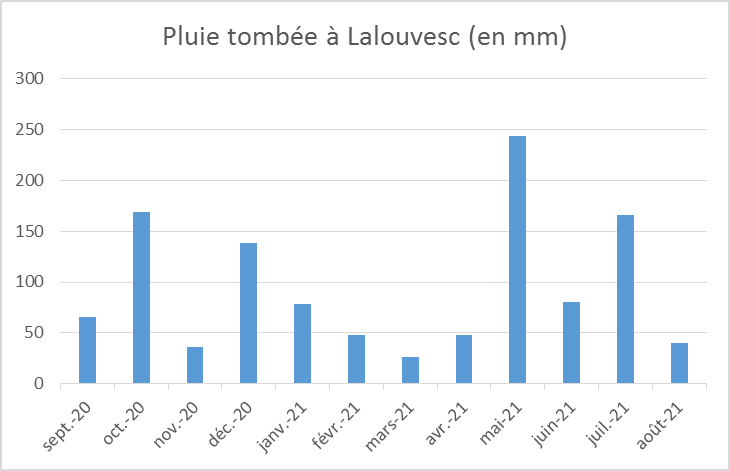 Entre début septembre 2020 et fin août 2021, il est tombé à Lalouvesc 1,14 m d’eau.