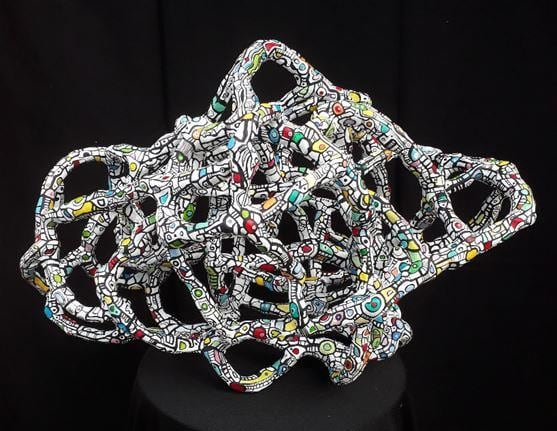 La première salle sur fond noir donnera le ton avec les époustouflantes sculptures de papier de Suhail Shaihk qui entreront en résonance avec les couleurs des batiks de Shasha Shaikh.