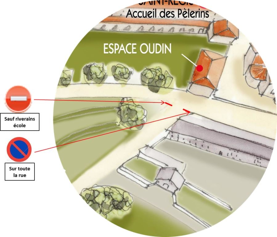 La place réservée personne à mobilité réduite (PMR) dans la rue le long de la basilique est en pente et donc impraticable. Elle sera remplacée par deux places ordinaires.