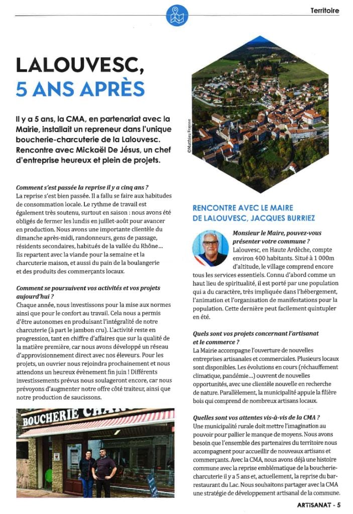 Lalouvesc dans le Magazine de la Chambre de Métiers et de l’Artisanat