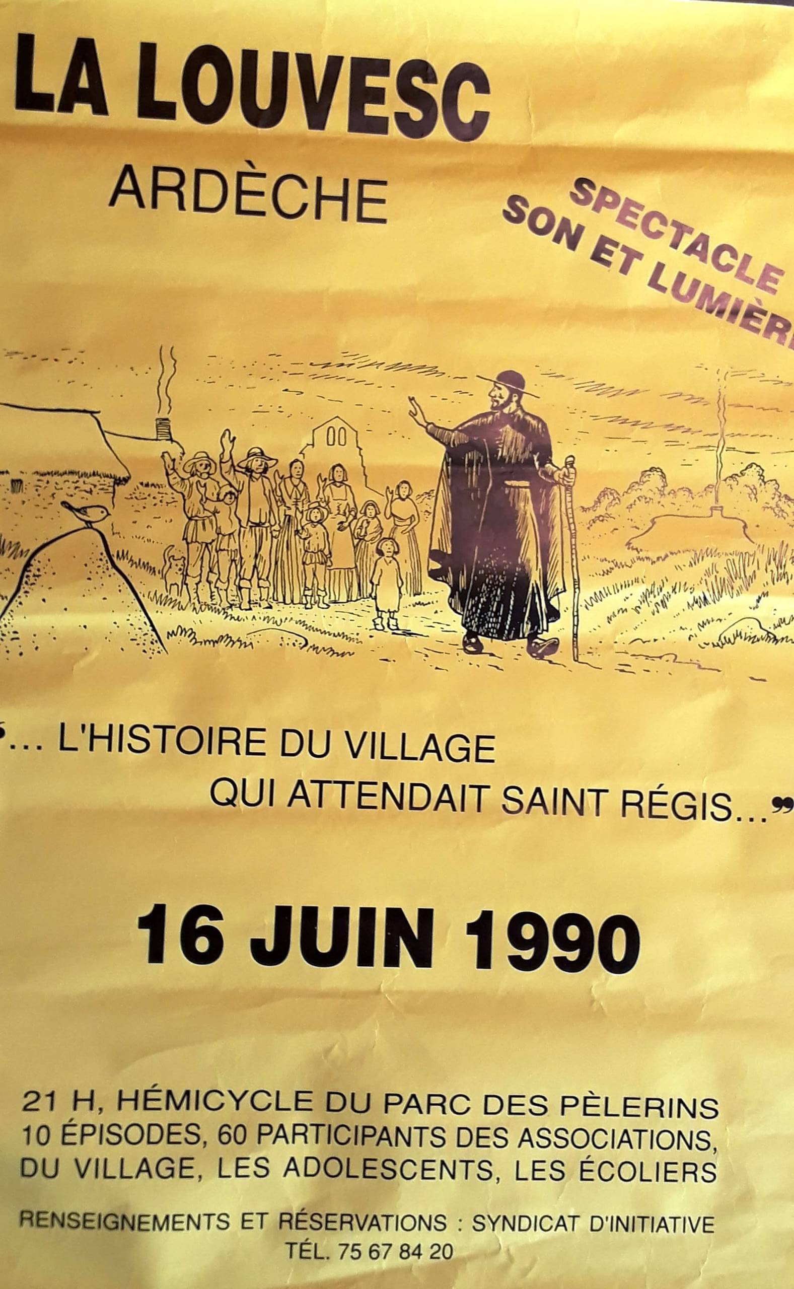Elle aimait aussi les fêtes et les célébrations et avait un talent exceptionnel pour les organiser et mobiliser l’ensemble du village. Du temps où elle était encore active, le printemps était l’occasion d’une fête des genêts où des dizaines de chars fleuris sillonnaient le village. Et surtout, morceau de bravoure et souvenir inoubliable pour ceux qui y ont participé : le 350ème anniversaire de la mort de Saint Régis en 1990 fut l’occasion d’un spectacle Son et Lumière au Parc des pèlerins comprenant plus d’une soixantaine d’acteurs et figurants du village. Avec ceux qui s’occupaient des décors, de la régie, on peut dire que tout le village a été mobilisé. La manifestation a eu tant de succès qu’elle fut répétée l’année suivante.