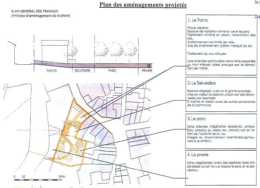 L' arrêté d’utilité publique a défini en 2019 un aménagement projeté par la Commune de l’espace libéré. Il indique dans son article 1er :