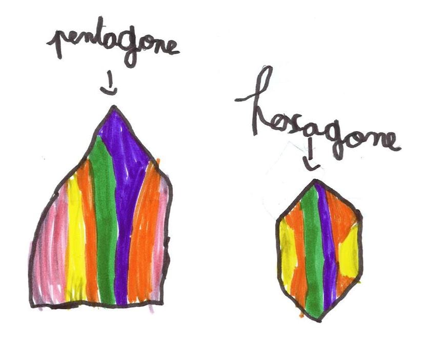 Ils trouvent d’abord une forme qui semble être un octogone mais en fait il s’agit d’un hexagone (qui n’a que six côtés). Alors ils se remettent à la recherche de cette forme. Le vent souffle toujours très fort et il est difficile de distinguer les formes. Ils trouvent un losange (quatre côtés), un pentagone (cinq côtés), un heptagone (sept côtés), un décagone (dix côtés) et aussi un dodécagone (douze côtés) mais toujours pas d’octogone ! Mais soudain le diamant se met à briller encore plus et commence à former un faisceau lumineux qui indique un emplacement. A cet emplacement, ils trouvent enfin le fameux octogone (huit côtés) qui leur permet de rentrer dans le temple. L’aigle royal, qui est le gardien de ce temple, les accueille chaleureusement car il est impressionné par la persévérance des enfants.