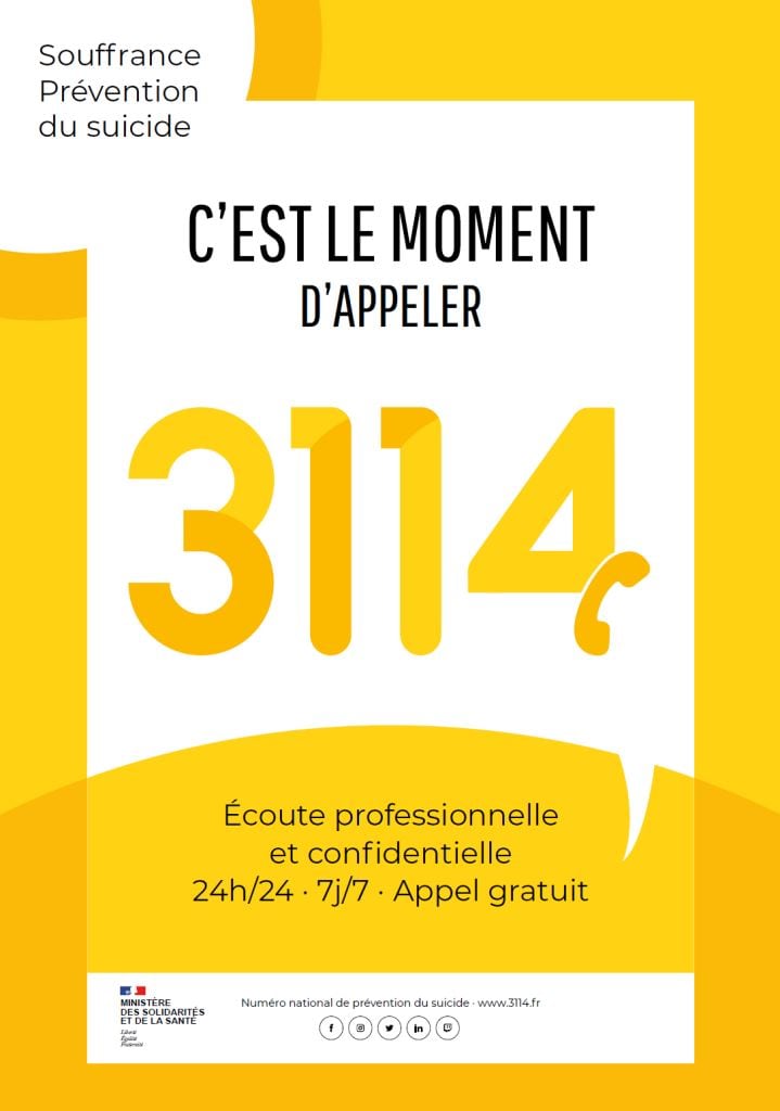 Depuis le 28 septembre dernier, un numéro national de prévention du suicide a été mis en place : le 3114.