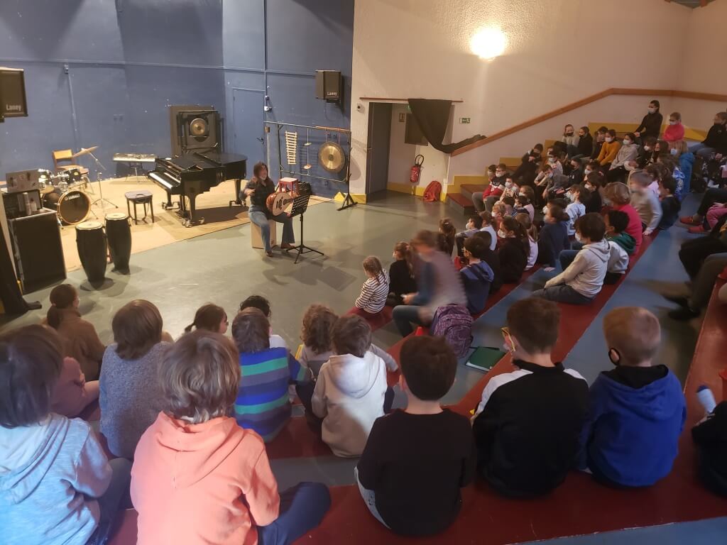 Nous avons pu chanter dans une grande chorale, avec trois autres classes, ce qui faisait beaucoup de monde dans l’auditorium ! Puis nous avons expérimenté le rythme avec des instruments : djembé, darbouka, congas, caisse claire, maracas, claves…