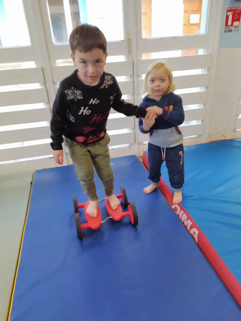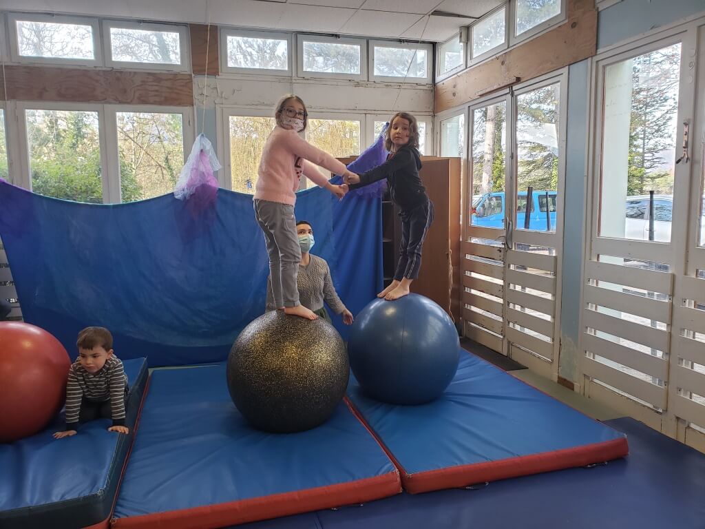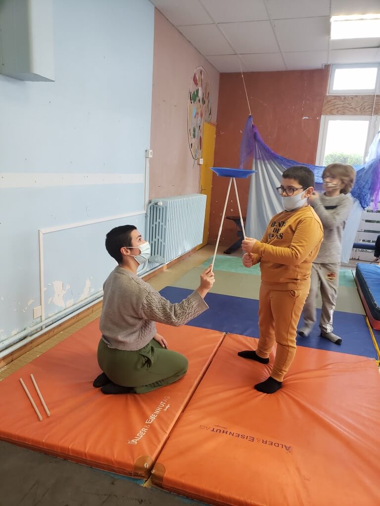 Nous avons aussi eu plusieurs séances de cirque : découverte des assiettes chinoises, du bâton du diable, du fil, de la jonglerie, de la boule, du rola bola et des pédalettes.