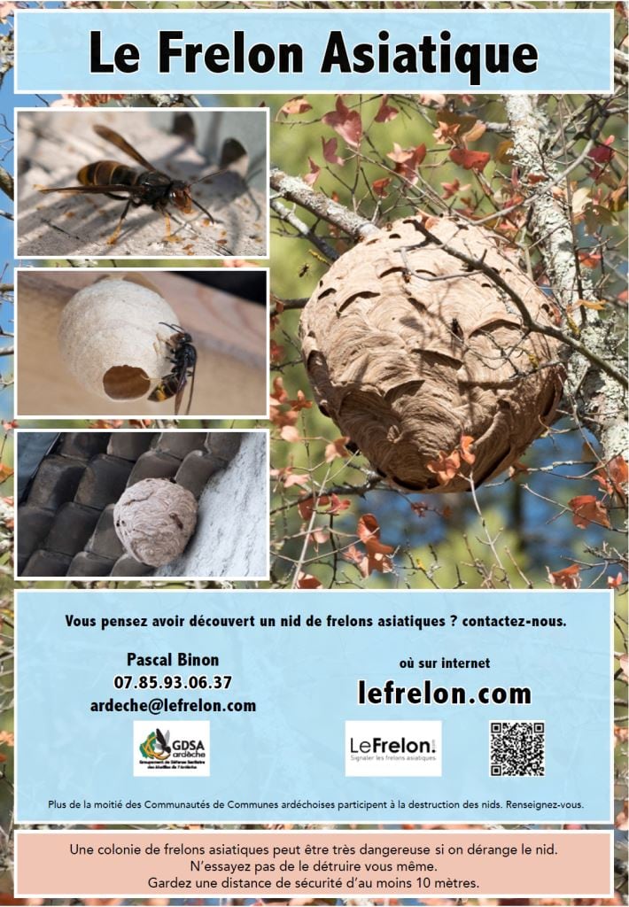 Un professionnel récemment homologué pour la destruction de nids de frelons à St-Alban-d’Ay. 06 74 90 66 98.