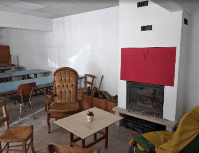 - création d’un salon à l’entrée de l’Abri pour accueillir les pèlerins et randonneurs fatigués par leur journée de marche (l’étape, sur le Chemin de St Régis, de St Agrève à Lalouvesc fait 27km avec un dénivelé de 900m),