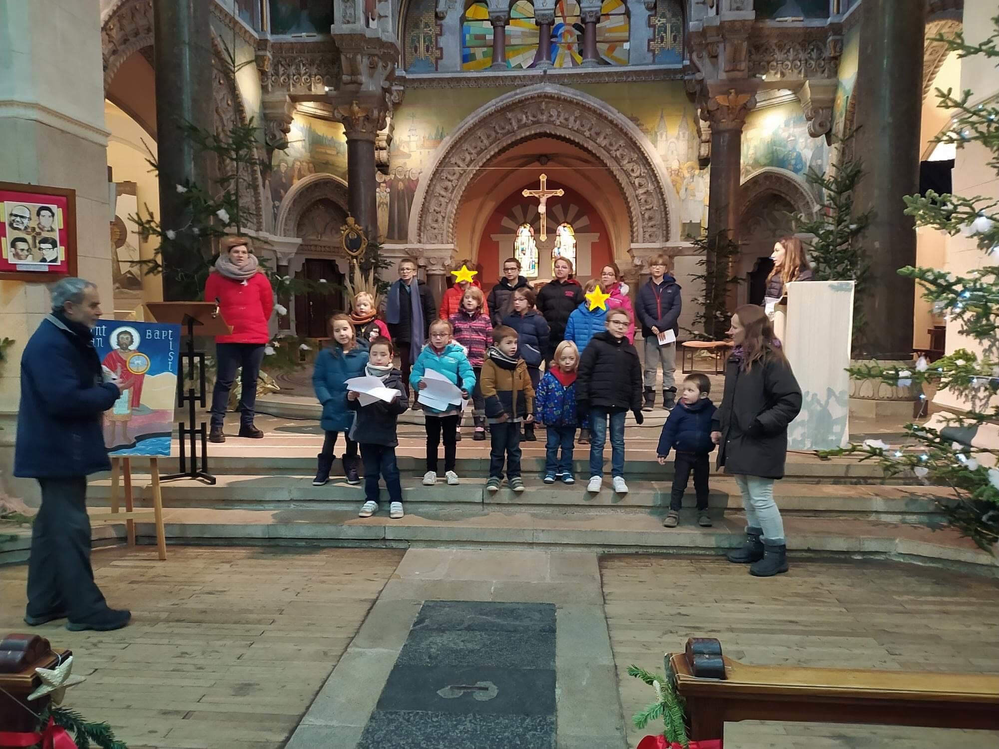 A chaque période scolaire, l’équipe pédagogique a fait le choix de banaliser une journée. Celle-ci est destinée à un temps pastoral. Cette période-ci, nous avons donc travaillé sur l’élaboration de la célébration de Noël. Au programme : chants en français et en anglais, saynètes sur le premier arbre de Noël, lecture de texte, présentation de la crèche de la Basilique… Nous remercions chaleureusement le Père Michel qui nous a beaucoup épaulé dans la conception des activités proposées lors de cette journée.