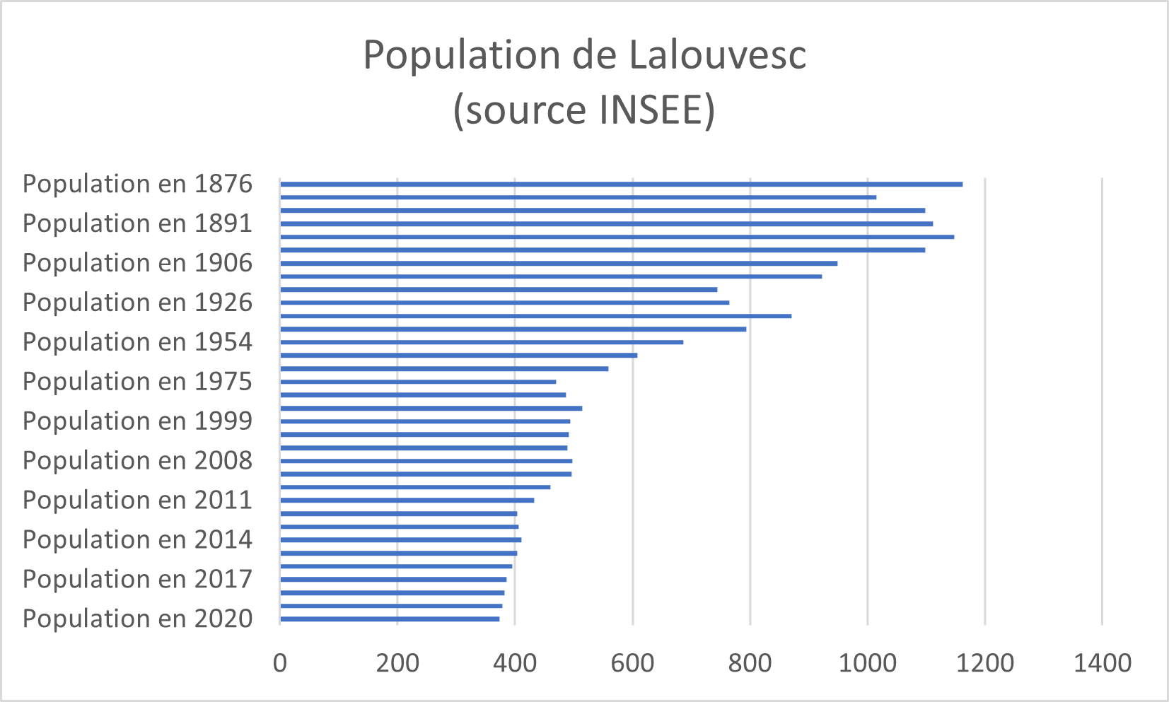 Le recensement permet de compter les habitants du village. Voici son évolution depuis un siècle-et-demi.