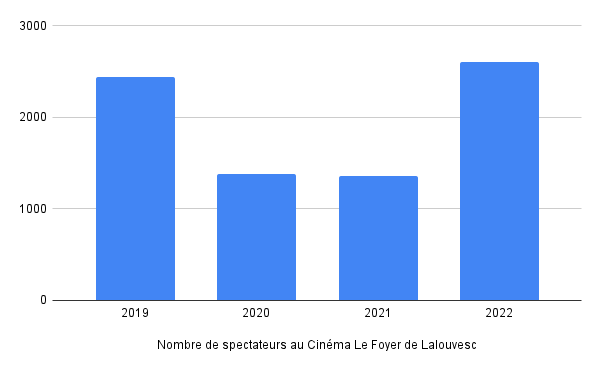 La saison 2022 a enregistré près de 2.600 spectateurs, au cours de 40 séances sur un total de 27 films : une fréquentation en nette hausse avec une programmation de qualité. La fréquentation moyenne par séance a été de 65 spectateurs. Tiercé gagnant : Les folies fermières (211 entrées, deux séances), Les volets verts (avant-première 182 entrées sur une seule séance), L’école du bout du monde (173 entrées, deux séances). La baisse due au Covid a été rattrapée beaucoup plus vite à Lalouvesc que dans le reste des salles françaises.
