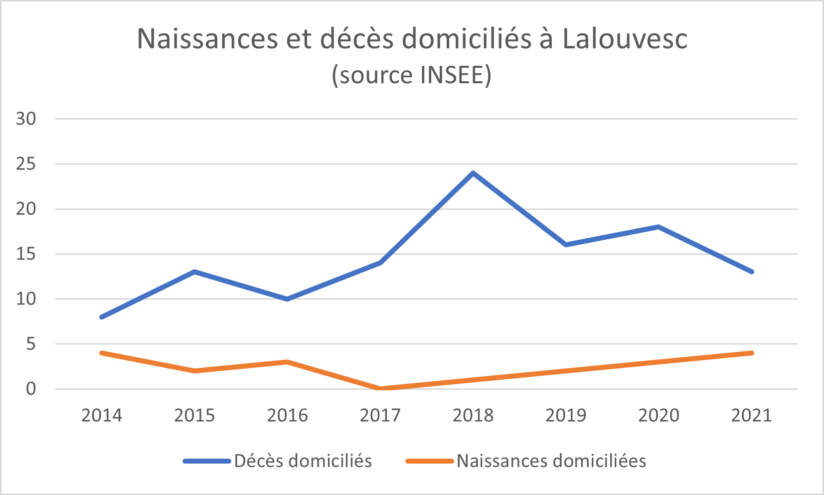 En 2022, quatorze décès ont été enregistrés ou transcrits et six mariages célébrés à la Mairie de Lalouvesc.