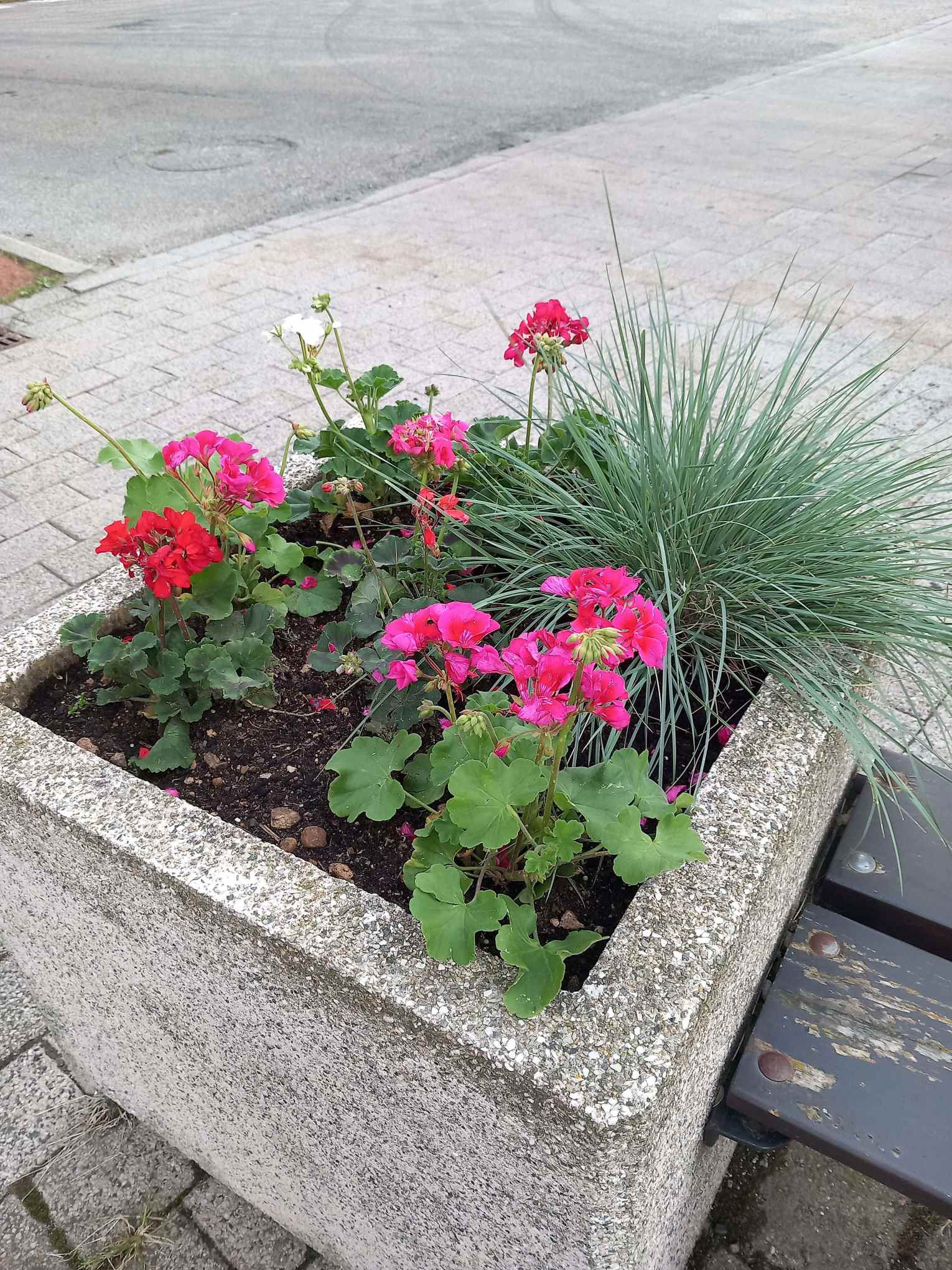 Le travail commence dès le mois d’avril par le choix des fleurs. Cette année nous avons pris en compte les aléas climatiques et le manque d’eau. Certaines plantes ont été choisies pour leur robustesse et leur facilité d’entretien. Ensuite mi-mai les bénévoles sont allés à la rencontre de notre horticulteur au Serres des Lacs à Cornas. Depuis plus d’une semaine les bénévoles œuvrent aux plantations.