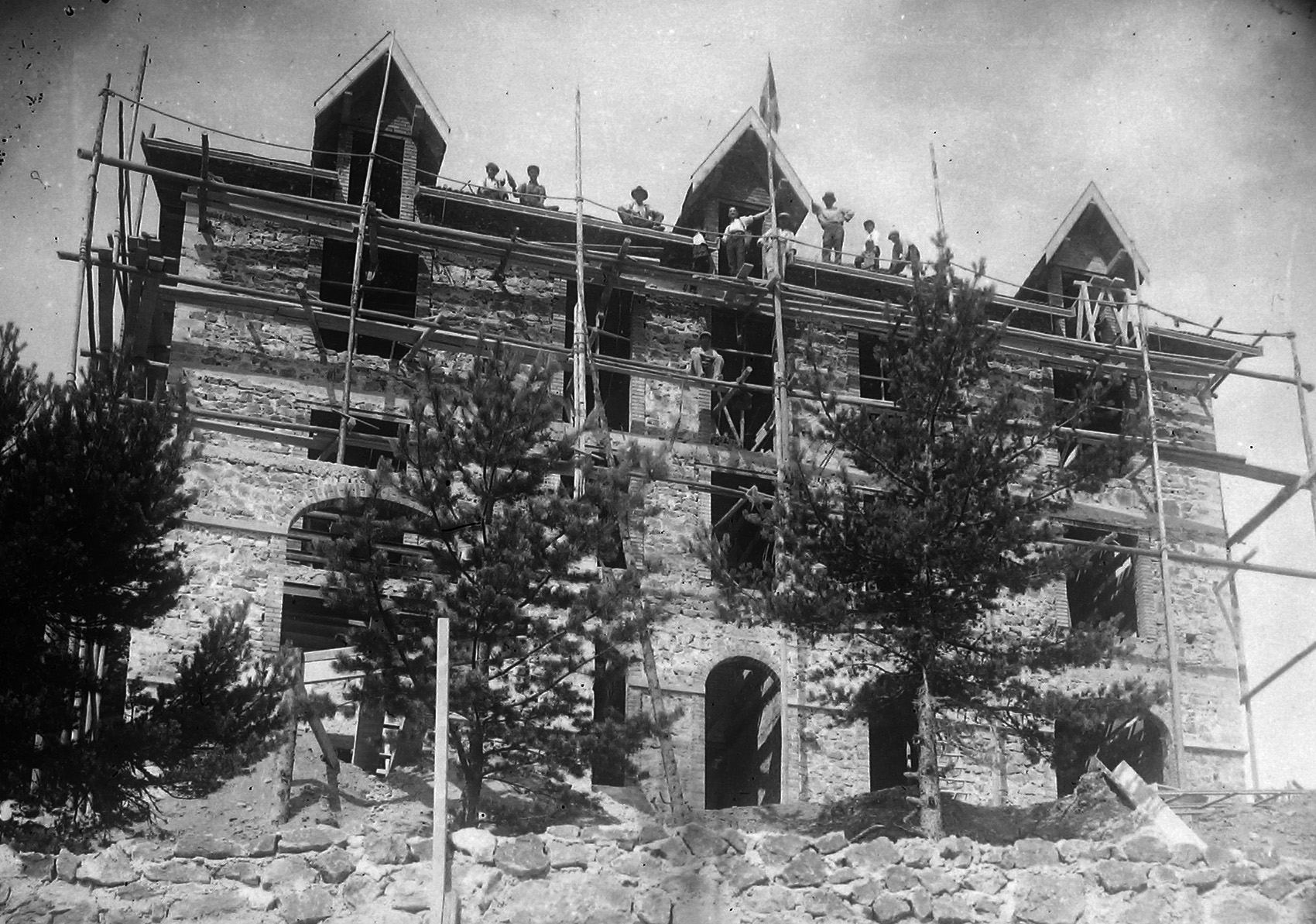 Voici pour ce mois-ci une énigme beaucoup plus facile à dénouer : deux autres photos d’archives de construction à Lalouvesc. Saurez-vous dire de quelles maisons il s’agit et à quelle date chacune a été construite ?