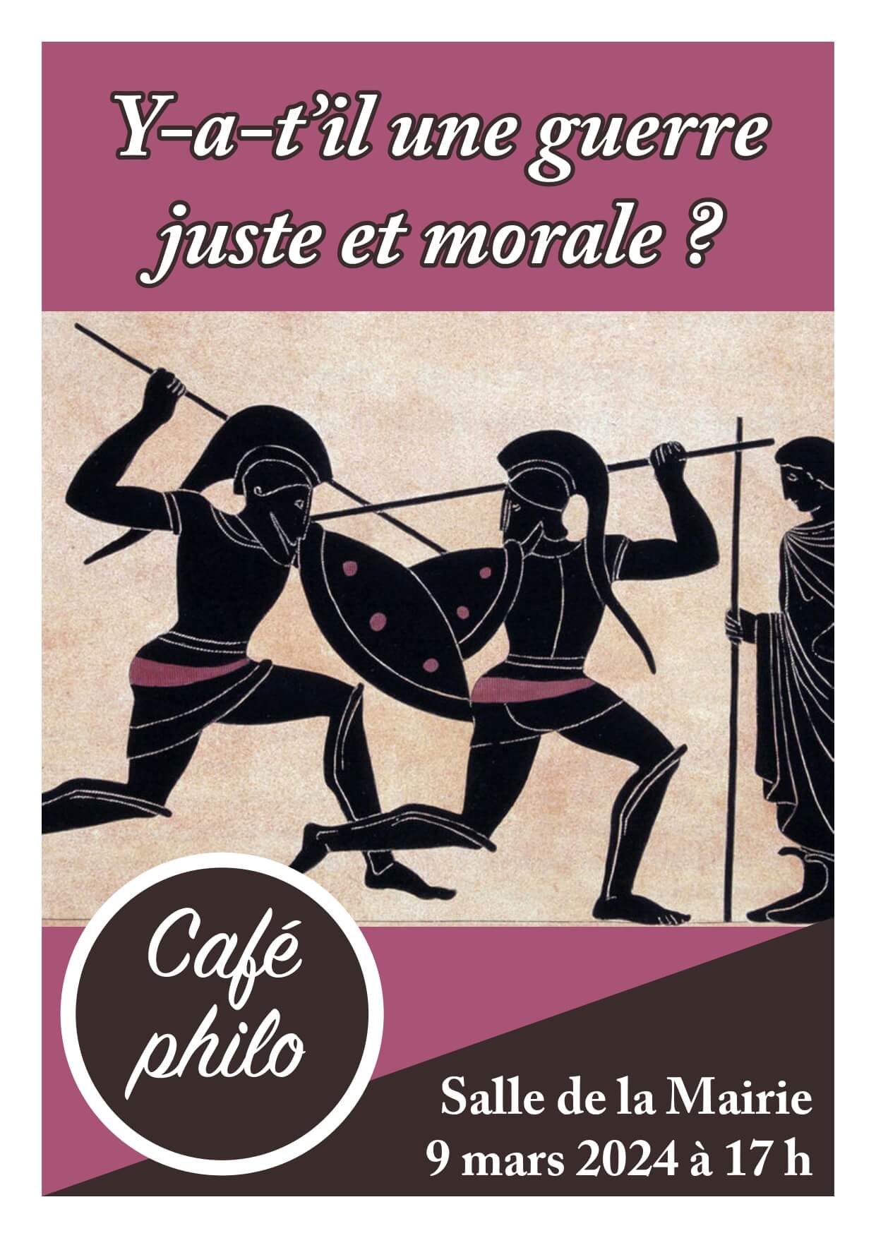 La prochaine séance du café-philo se tiendra le 9 mars à partir de 17h à la mairie. Thème : Y-a-t’il une guerre juste et morale ?