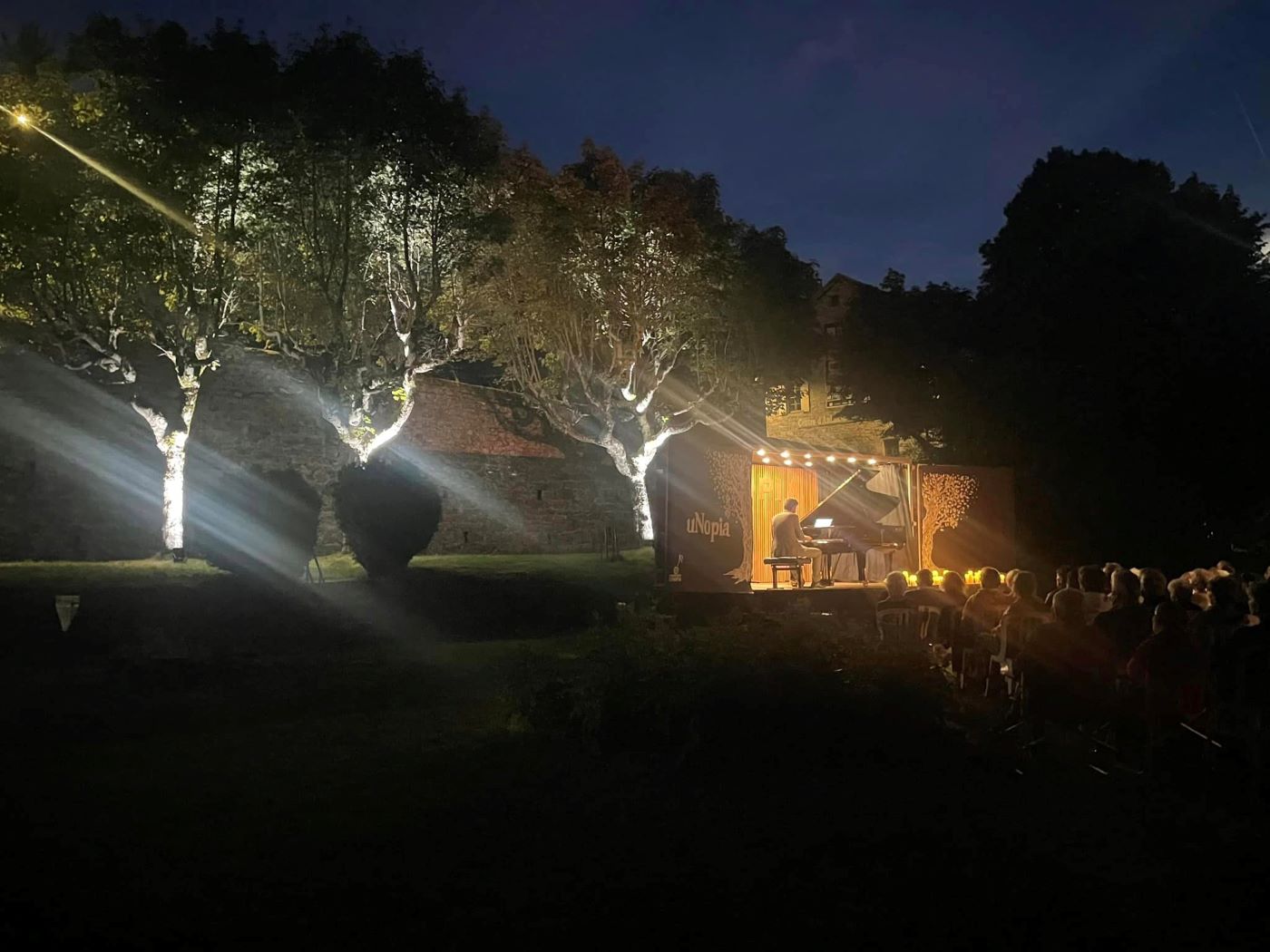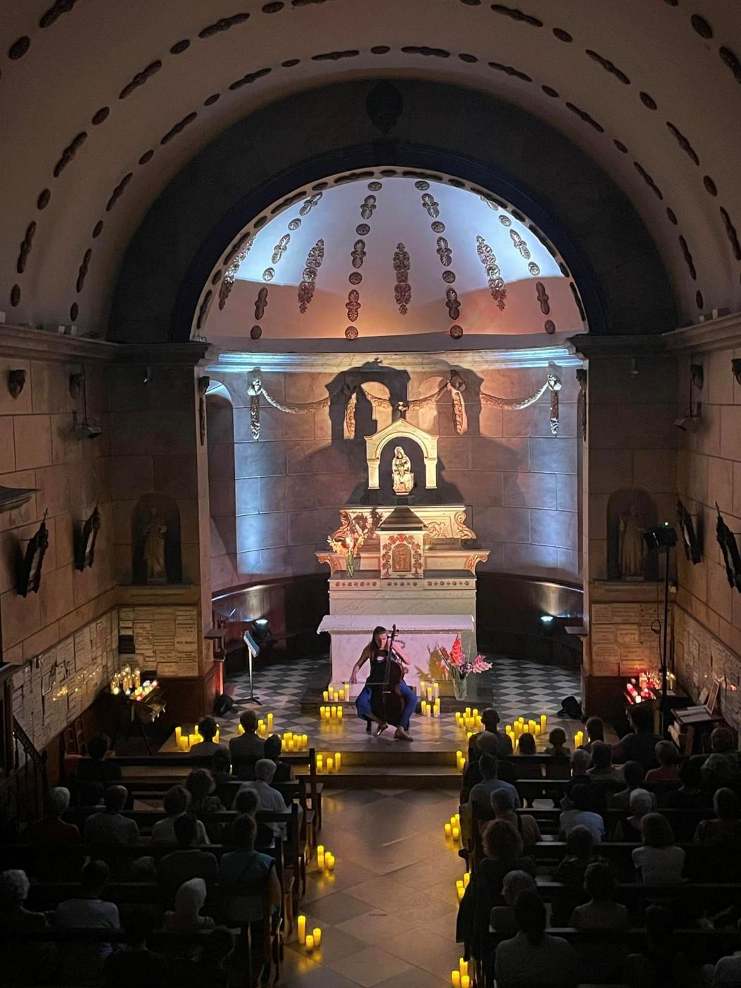 Le Festival Inspiration a rayonné dans différents lieux de la Communauté de communes : !a Chapelle Notre Dame d’Ay où Hanna Salzenstein, « la nouvelle voix du violoncelle », nous a invité à une rencontre imprévue entre deux compositeurs : Bach et Dall’Abaco. Un merveilleux moment de complicité musicale, pour célébrer le violoncelle à la lueur des bougies ; le prieuré de Veyrines où après une randonnée sur des chemins pierreux et un intermède musical magique de théorbe à Rochelipe, les spectateurs ont découvert Farnaz Modarresifar, sa pratique virtuose du santour (instrument iranien de 72 cordes, 18 chevalets, une table d’harmonie) et son travail de composition.