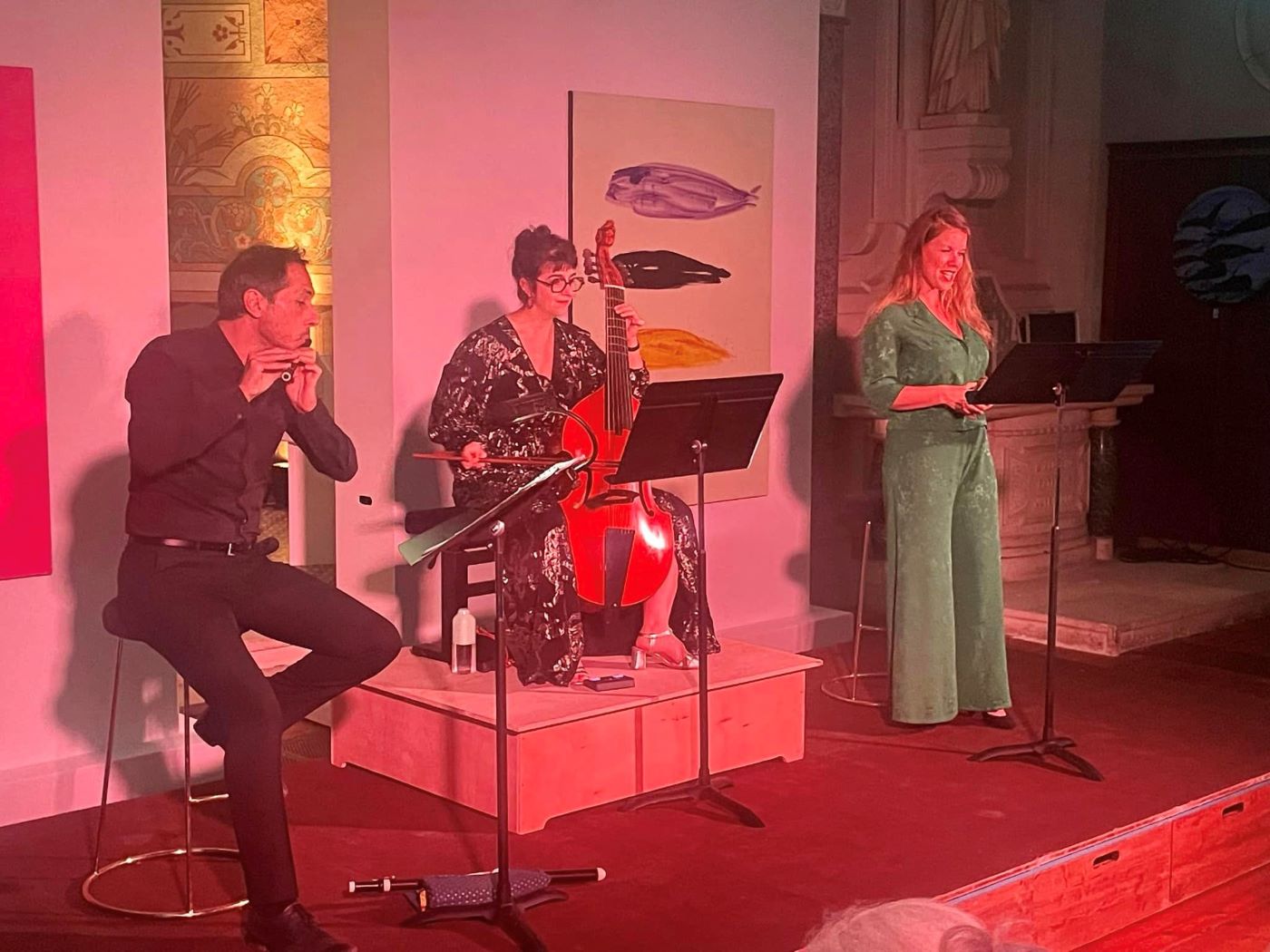 La chapelle Saint-Ignace a résonné au son de la viole de gambe, du traverso et de la voix de Fiona McGown en revenant aux origines mêmes de la chanson populaire, Les Itinérantes et la compositrice Farnaz Modarresifar nous ont envoutés dans un voyage “Entre Ciel et Terre”, une itinérance à travers les styles, le temps et l’espace. Les oiseaux du crépuscule ont essayé de rivaliser avec des morceaux de Haydn, Brahms ou Rachmaninov, joués par le piano enchanteur de Guilhem Favre dans le jardin de la Maison St Régis.