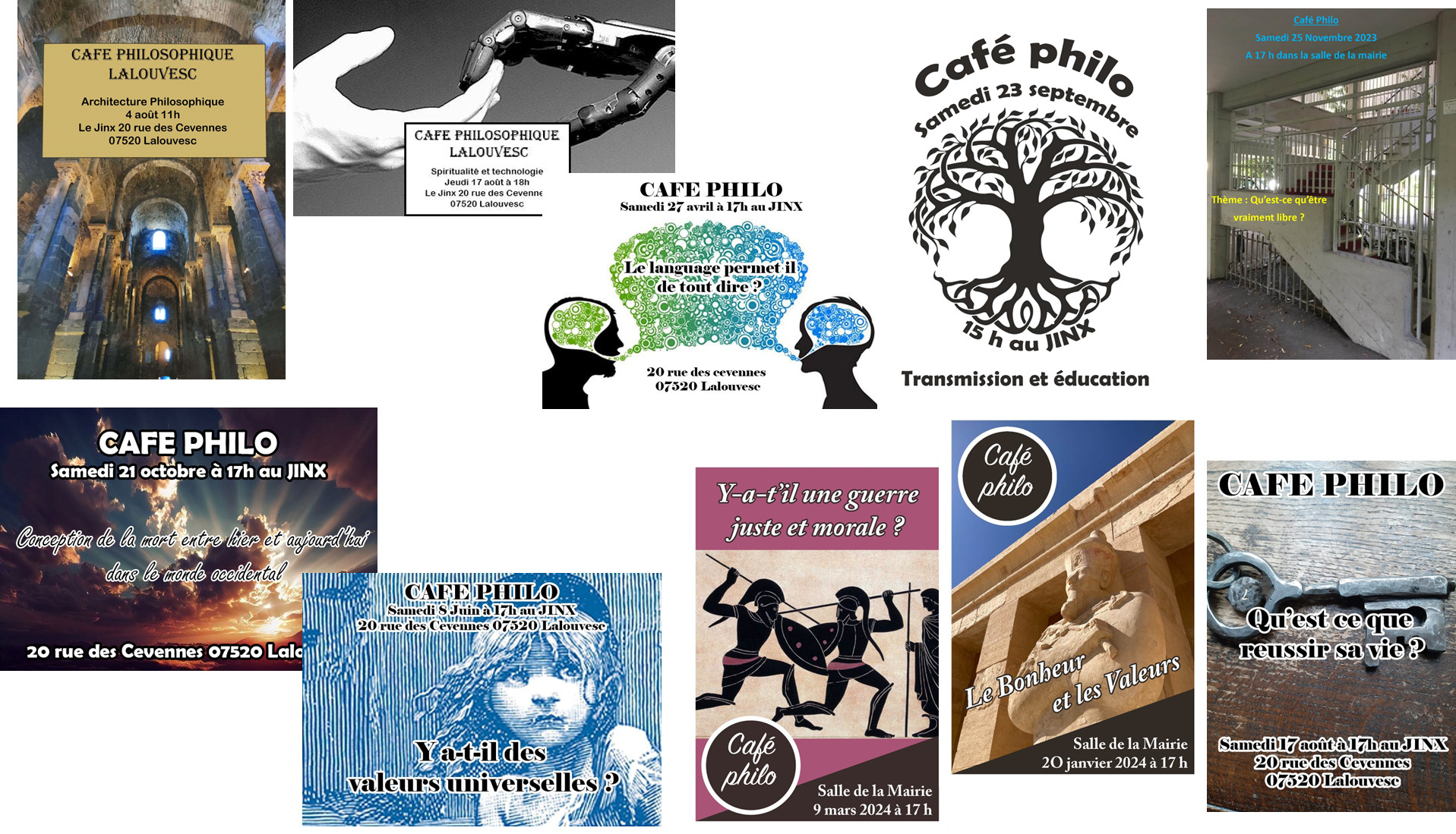 La France est toujours un phare dans la Pensée Universelle depuis la Révolution et les Lumières. C’est à Paris qu’est né le premier café philosophique (café philo) du monde, au « Café des phares », et cette idée sera reprise dans le monde entier. Le 4 Août 2023 ouvrait le premier café philo de Lalouvesc au Jinx, 20 rue des Cévennes sur le thème de « l’architecture et la philosophie ».