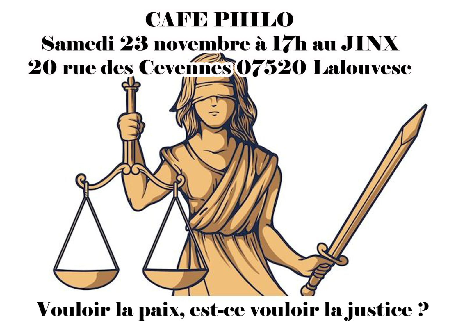 Le thème du prochain Café-Philo aura pour thème : “Vouloir la paix, est-ce vouloir la justice ?”. Il se tiendra au Jinx ou à défaut à la Mairie.